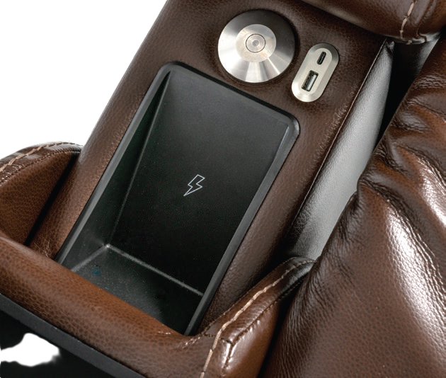 via Bluetooth® and adjust the settings with audio controls found in the arm of the recliner.